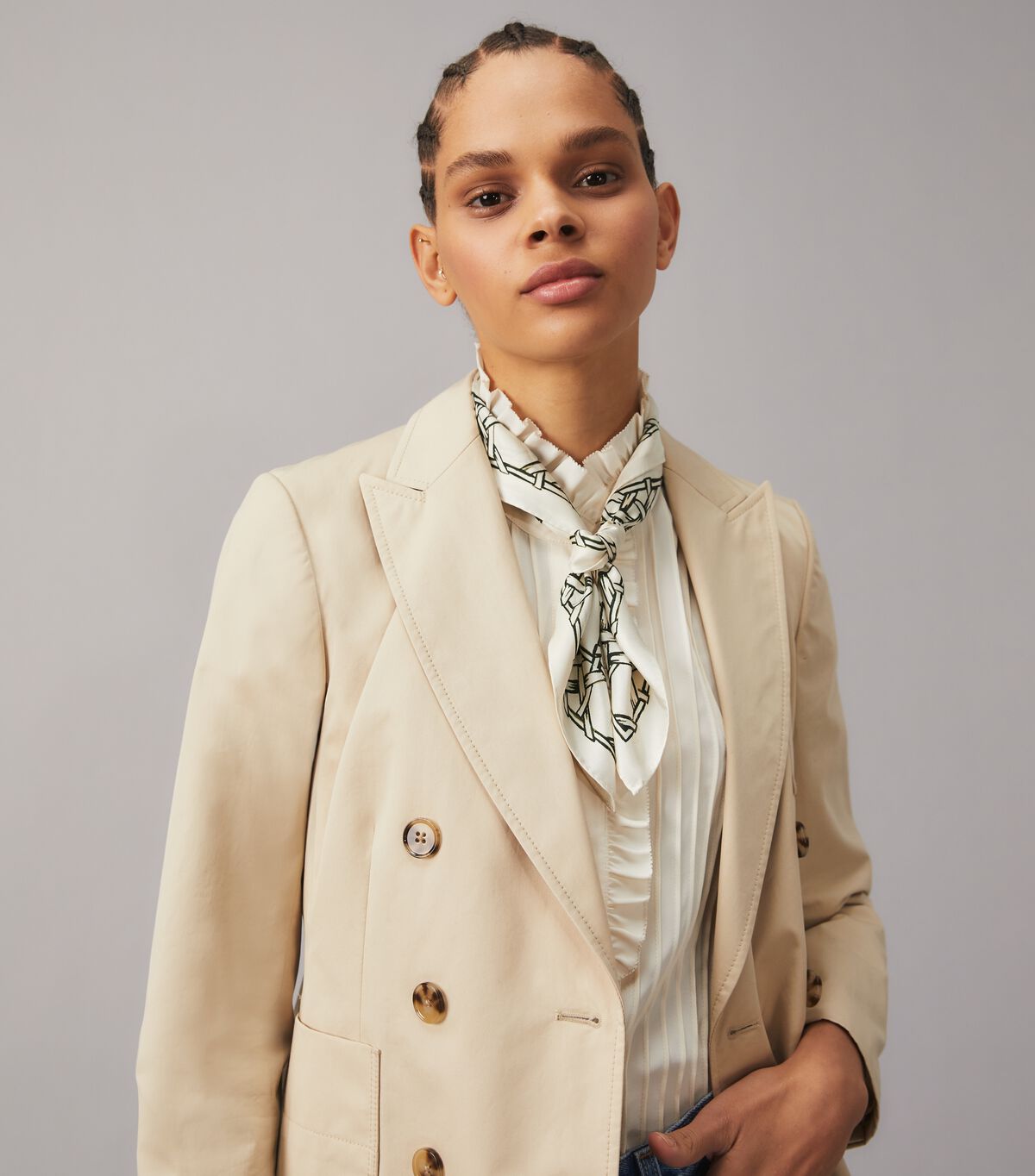 تعكس مجموعة ربيع / صيف 2021 حب توري للمواد الطبيعية والتفاصيل الحرفية والحرفية: السلال التي كانت معلقة في منزل طفولتها ، الروطان لكراسي الحديقة العتيقة. قمنا بإعادة تفسير نسج السلة على أنه طباعة هندسية جريئة - يُنظر إليها على أنها خلفية وحدود على منديل العنق المطلي. إنه رائع كربطة معصم أو عصابة رأس أو تضاف إلى حقيبة يد.