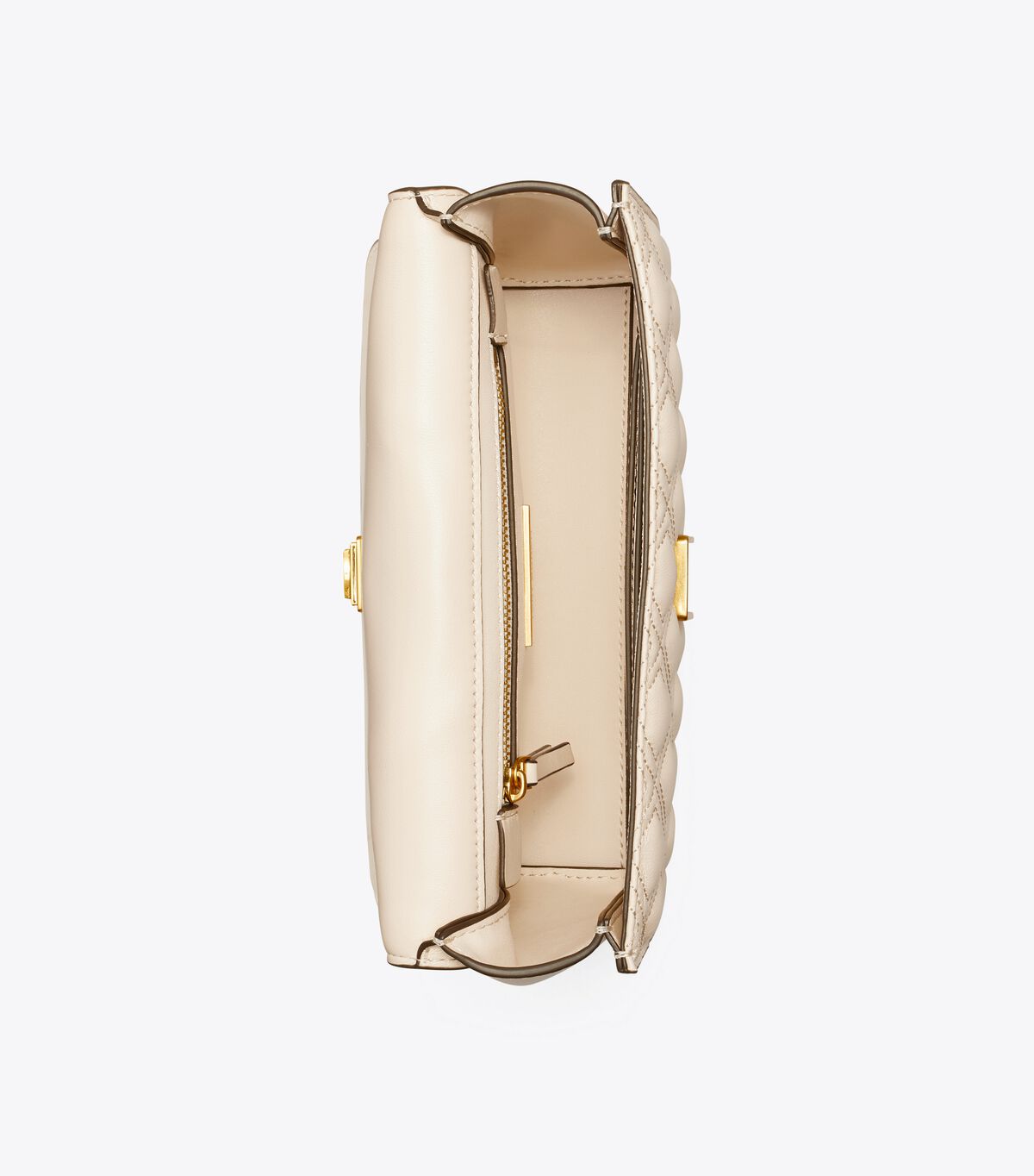 Bold diamond quilting and smooth leather, with refined details and construction. Our iconic Double T in embossed bomb... Bold diamond quilting and smooth leather, with refined details and construction. Our iconic Double T in embossed bombe. The adjustable strap, woven with brushed gold chain, has a double shoulder guard and can also be carried crossbody.